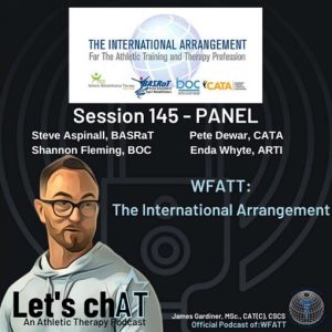 Listen now to session 145 of the of the official podcast of The World Federation Of Athletic Training & Therapy (WFATT). In this session of “Let’s ChAT: an Athletic Therapy Podcast” (available to listen to on Apple Podcasts and Spotify), a global panel answers the question: What is the International Arrangement (IA)?