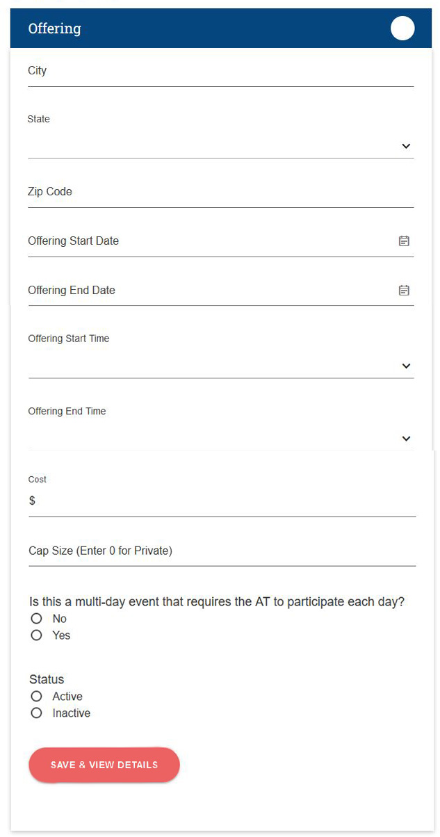 - Cost – This is the program price ATs will see when searching for programs on the public program directory