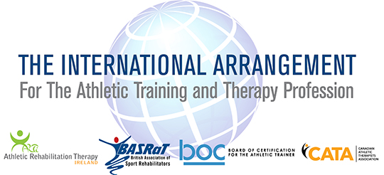 The International Arrangement (IA) for the profession of athletic training and therapy plays a key role in optimizing care, injury prevention, rehabilitation and supporting the rights of patients and the public to achieve their potential to live well. The IA ensures comparable best practices, quality education and professional standards. The IA provides an opportunity for Athletic Trainers (ATs), Athletic Therapists and Sport Rehabilitators to be mobile on a global scale by creating a pathway to challenge each other’s credentialing exam.