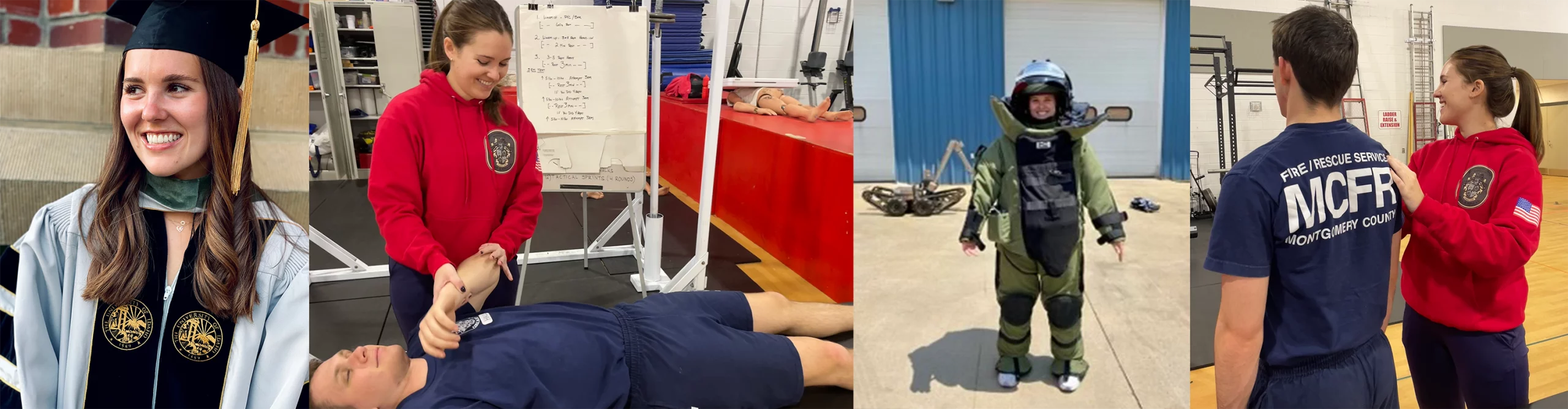 I love the people I get to serve in the fire service. I greatly respect those who work in public safety, having grown up in a family of police and firefighters and now being married to a police officer. The department has become like a second family to me, making everyday fun and exciting. I also love the opportunity to experience the job of a firefighter and rescuer by riding along and attending specialized training. I’ve suited up and entered a live burn with our recruit academy, attended swift water rescue training on the Potomac River, participated in bomb squad training, completed a 24-hour ride along at our busiest station in the county, and had many more once-in-a-lifetime experiences that not many healthcare professionals can say they’ve had.