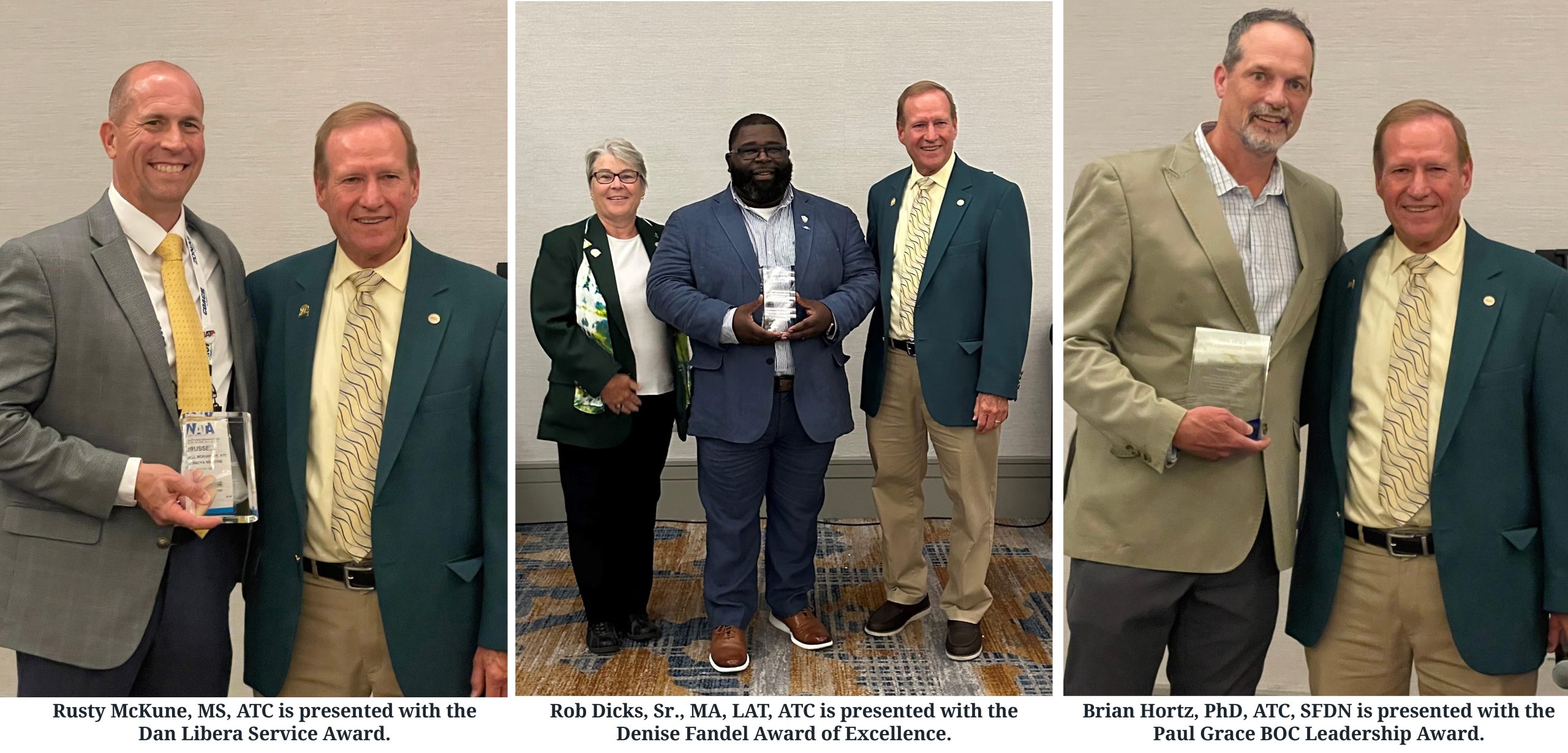 On June 22, the BOC Board of Directors and staff hosted a reception to honor BOC volunteers and to present awards. Congratulations to our 2023 volunteer service award winners: Rusty McKune, MS, ATC – Dan Libera Service Award; Rob Dicks, Sr., MA, LAT, ATC – Denise Fandel Award of Excellence; and Brian Hortz, PhD, ATC, SFDN – Paul Grace BOC Leadership Award. Each of this year’s award recipients were present.