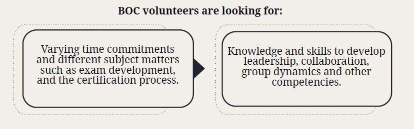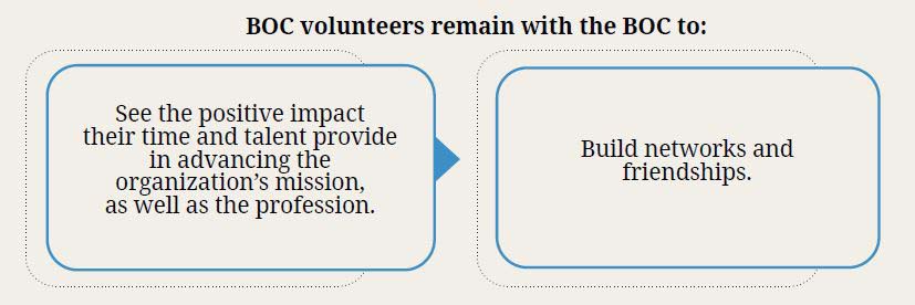 The call is out for BOC volunteers! Every Athletic Trainer (AT) can find an opportunity to be involved, shape the athletic training profession, expand their network, as well as enhance their career. There are many personal and professional impacts of volunteering. Taking an active part in the BOC allows ATs to make connections with other professionals they might not normally meet. In addition, it provides ATs a different lens for understanding the value of certification and what that means to the profession.