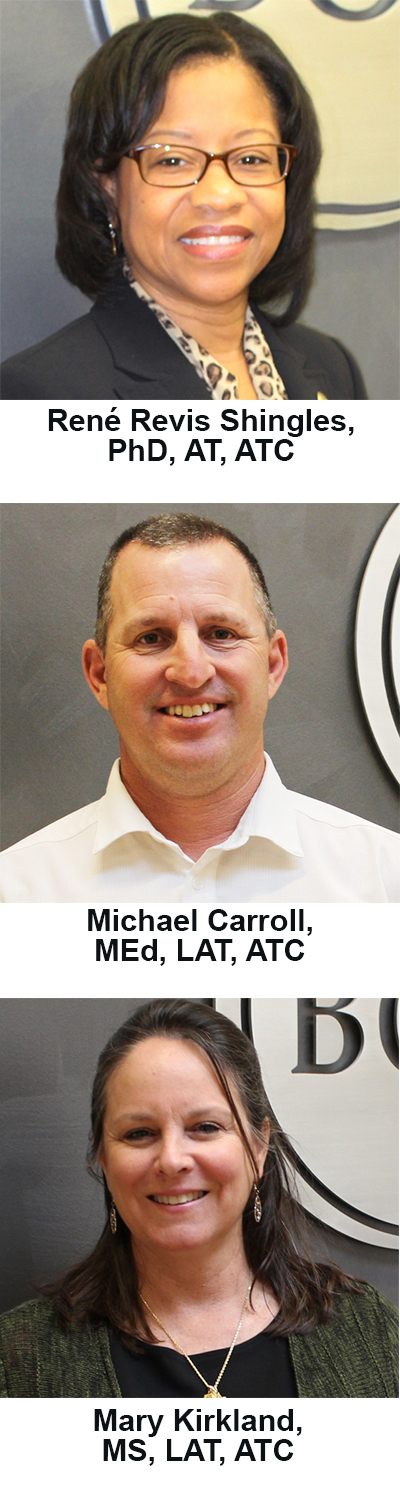As Shingles makes this move to president, Michael Carroll, MEd, LAT, ATC, will step into the vice president position. Carroll currently serves as an AT director on the board. His service to the athletic training profession includes serving as a former BOC examiner and model. In addition, he has served on several varied NATA committees, task forces and work groups, in addition to being president of the Southwest Athletic Trainers’ Association.